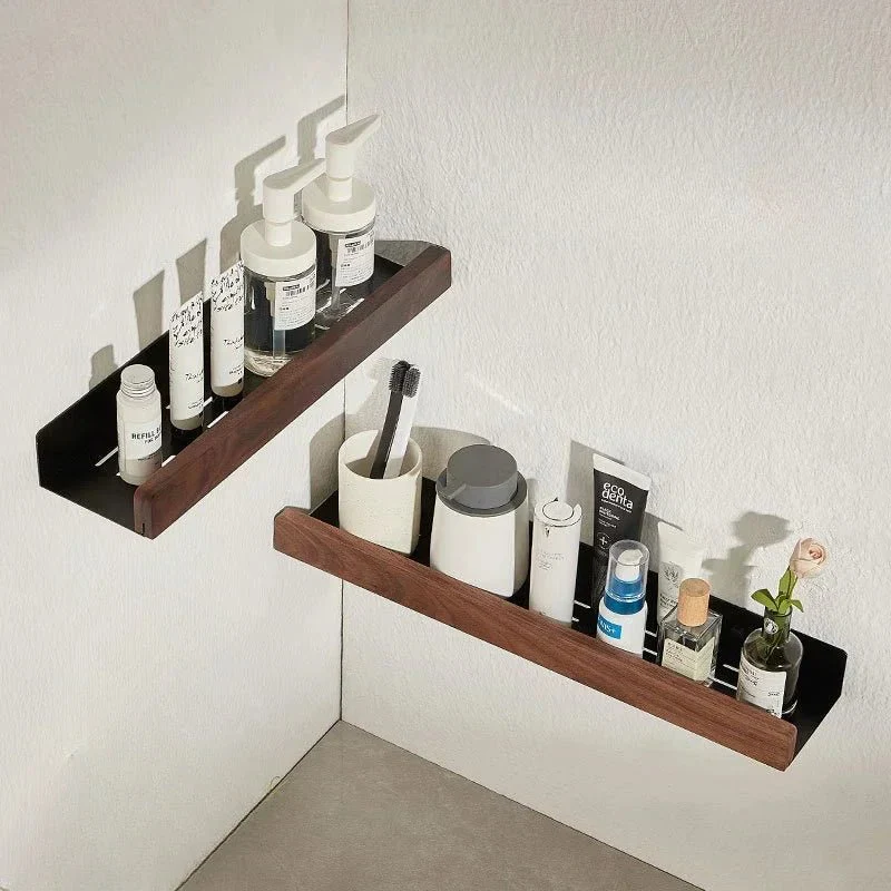 • 1x Solid Wood and Aluminium Punch-Free Bathroom Shelf